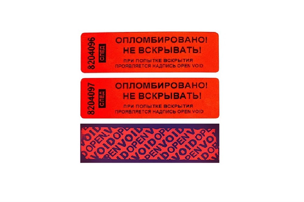Пломба-наклейка 22*66 мм со следом представляет собой самоклеющуюся наклейку со специальным защитным термослоем и применяется для опломбирования металлических, деревянных, пластиковых,картонных и других поверхностей,
